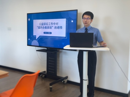 院党组高度重视各部门之间高效配合、融合履职,要求各业务条线要树牢“一盘棋”思想,实现信息互通、工作互助、经验互享,通过内部线索移送拓宽案源,不断增强法律监督的实力和合力。同时采取检委会授课、定期开展业务沙龙等形式搭建平台,促进各业务部门之间沟通交流、分享经验做法,为实现一体化履职奠定基础。在第二期“检之韵”业务沙龙活动中,公益诉讼部门干警结合工作实际,以“如何提升办案质效”为主题,通过PPT演示介绍公益诉讼案件办理过程,分享关于如何高质效办理公益诉讼案件的观点和见解,并与其他干警交流探讨在检察履职过程中如何敏锐发现公益诉讼案件线索。